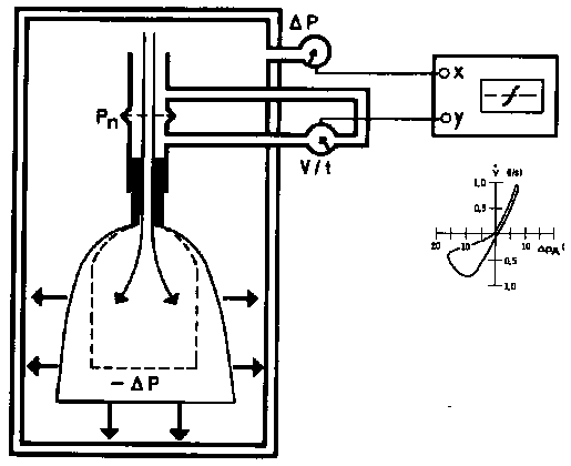 Zur Bestimmung des Atemwegswiderstandes wird die Druckdifferenz intrathorakal (Mundhöhle) - extrathorakal gegen die Stärke des erreichten Atemluftstroms aufgetragen