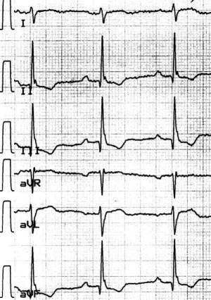 Normocarder Sinusrhythmus 82/min., Linkslage, no. Erregungsbildung, -ausbreitung, normale Repolarisation, deutliche U-Welle v.a. in V2 - V4.