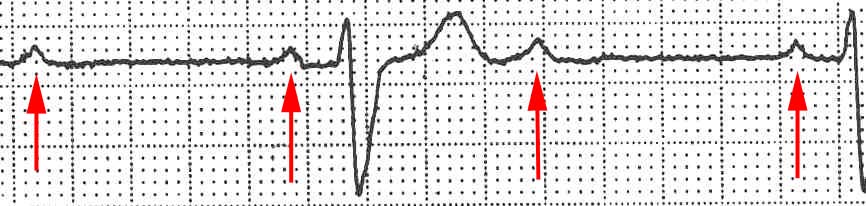 Bei Vorliegen einer regelmässigen Bradyarrhythmie mit Nachweis von P - Wellen besteht meist eine AV - Blockierung: