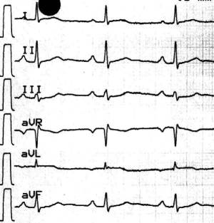 Im Verlauf nach erfolgreicher Lyse bei Vorderwandinfarkt nun bradycarder Sinusrhythmus von 66 / min., Linkslage, no. Erregungsbildung, -ausbreitung und bis auf Q V1, V2 normale Repolarisation, die T-Wellen haben sich beim Bild des chronischen Infarktes wieder aufgerichtet.