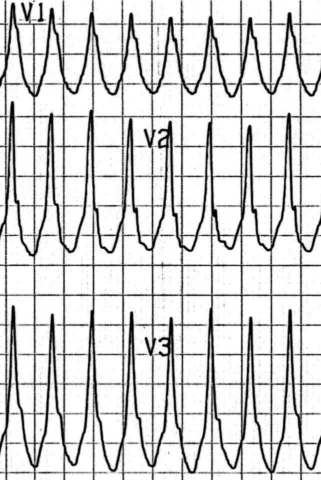 78 jährige Rentnerin mit bekanntem Mitralklappenprolaps und leichter Mitralinsuffizienz, wegen suprav. Tachycardie und VES bis Lown IVb im Jahr 1990 über einige Monate mit Mexitil behandelt.